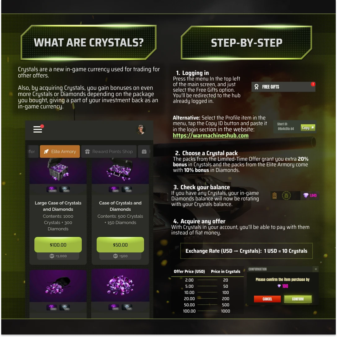 Kryształy to specjalna waluta w grze używana do wymiany na oferty i pakiety bezpośrednio w grze.